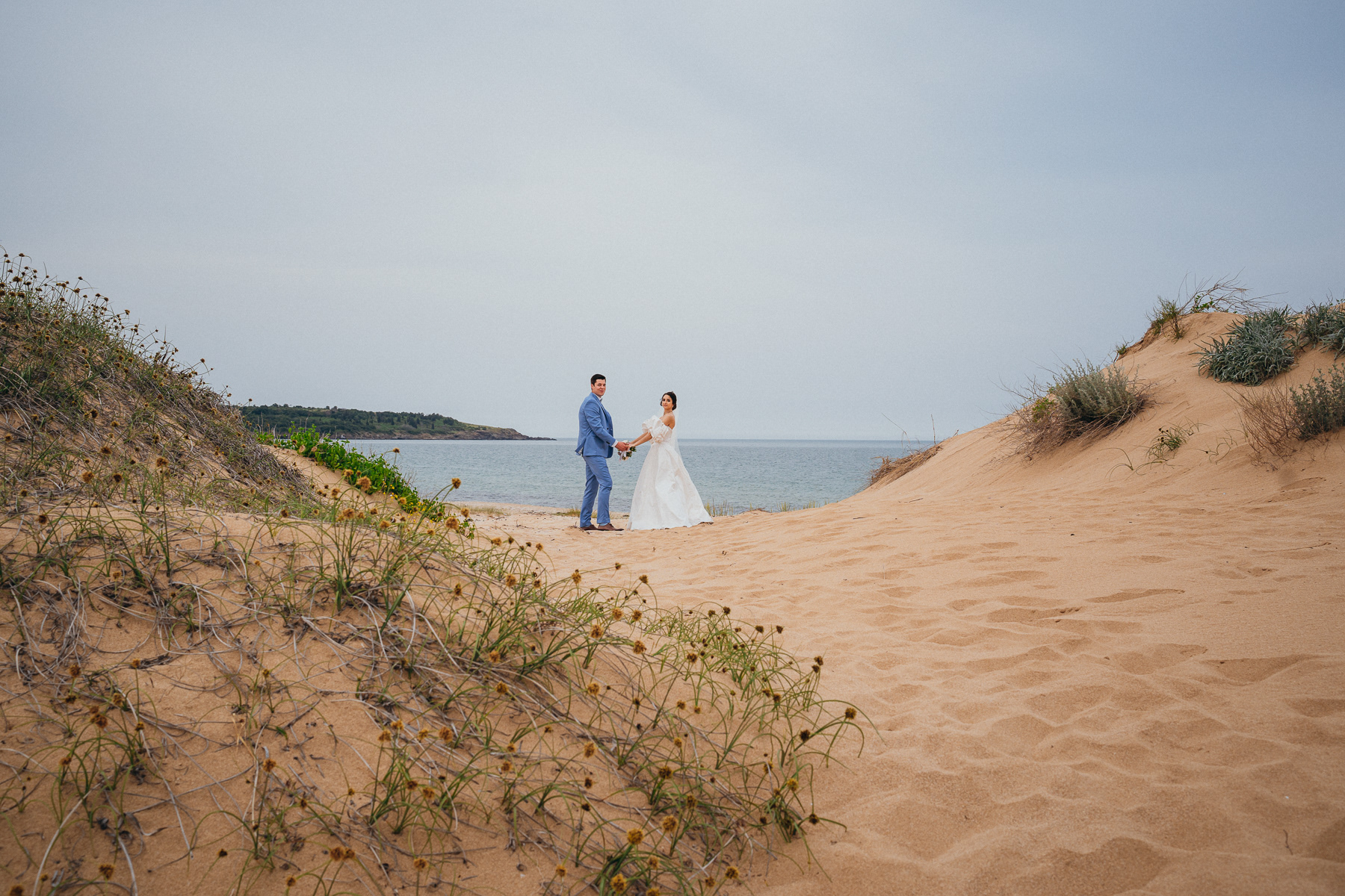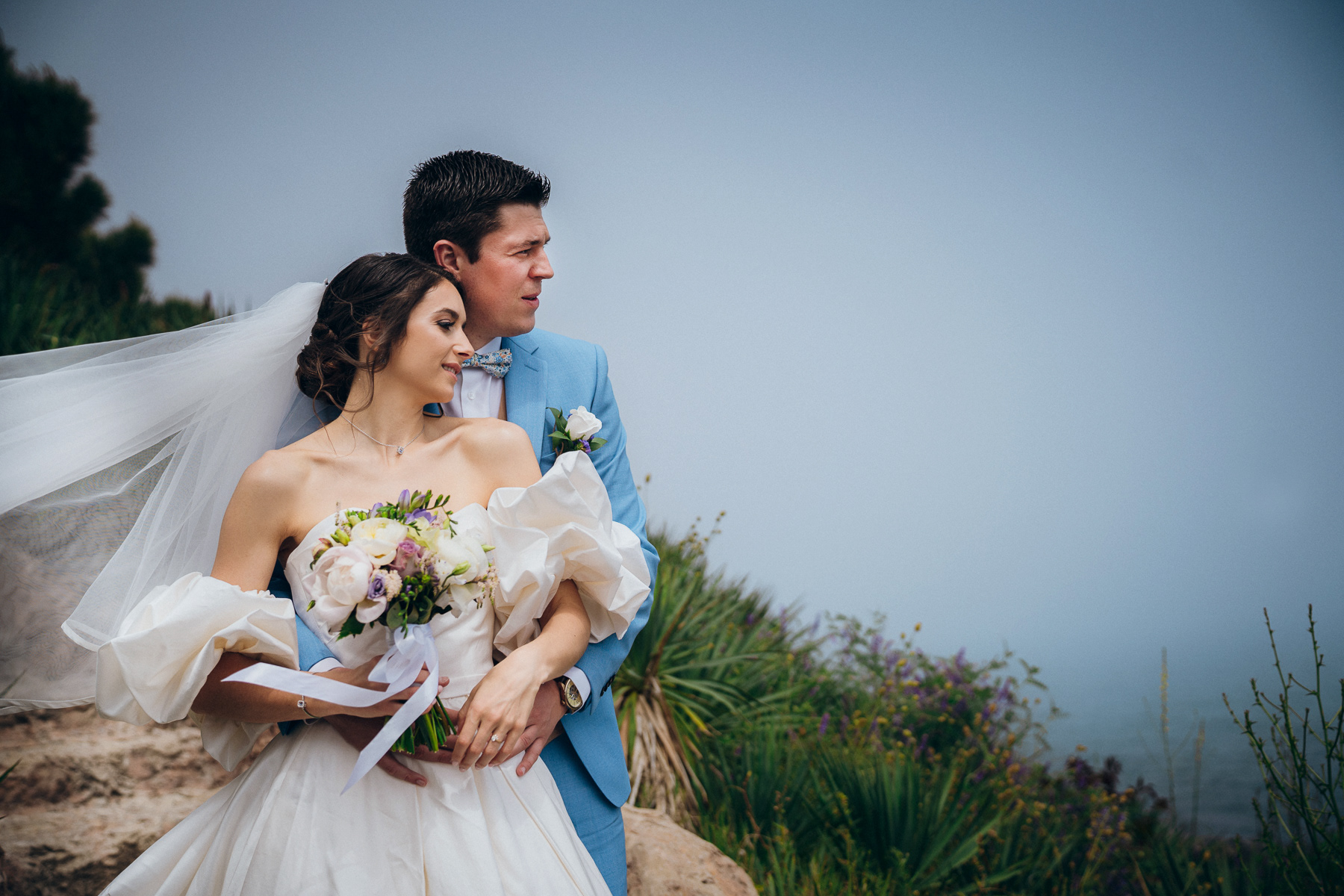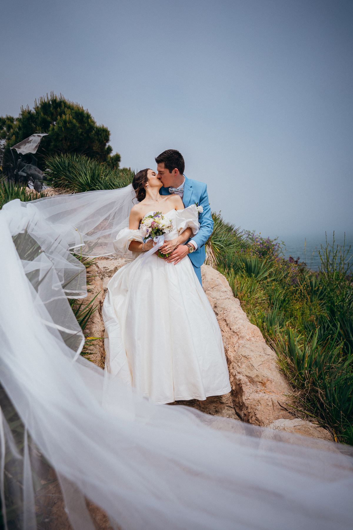 Сватбата на София и Венсан в Созопол беше истинска симфония от изкуство, природа и емоции. Имах щастието да съм сватбен фотограф на тази красива сватба, когато сред зеленина, морски хоризонт и внушителни скулптури, двамата си казаха "Да!"