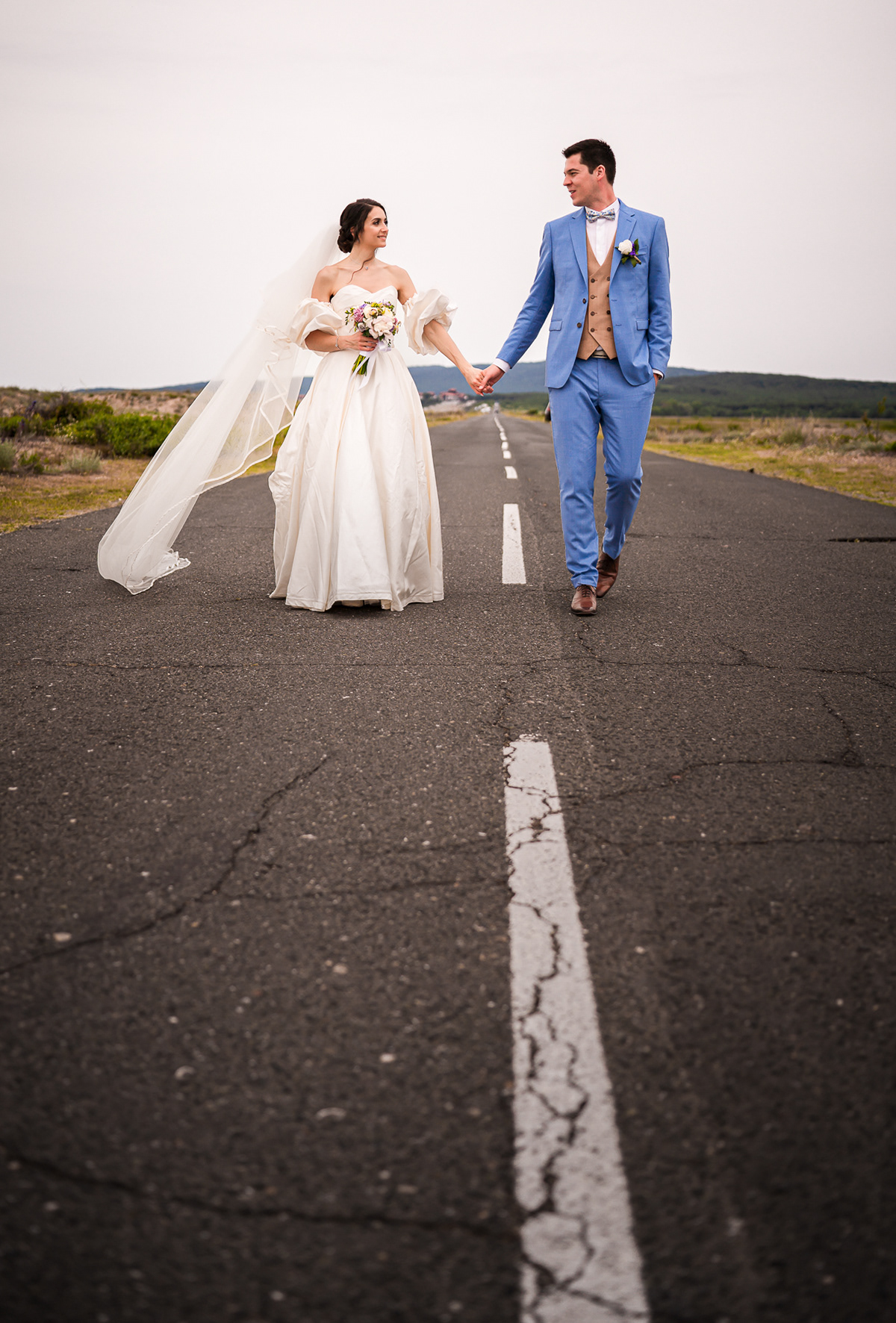 След това се пренесохме към Шофьорския плаж край Дюни - за няколко кадъра, пълни с движение, страст и свобода. София и Венсан вървяха по пътя - буквално и символично - ръка за ръка, докато си припявах "Вървят ли двама..."