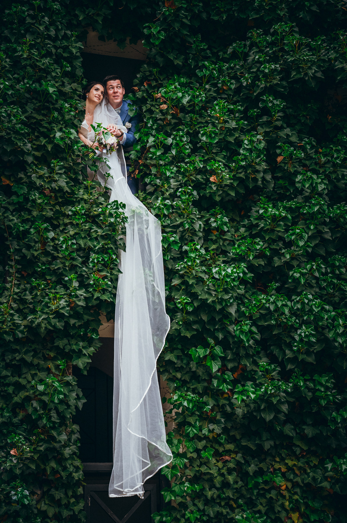 А в един специален момент, вдъхновен от Рапунцел, София се показа от кула, обрасла с бръшлян и спусна воала си към Венсан. Кадър от приказка, която да се разказва на бъдещите поколения.